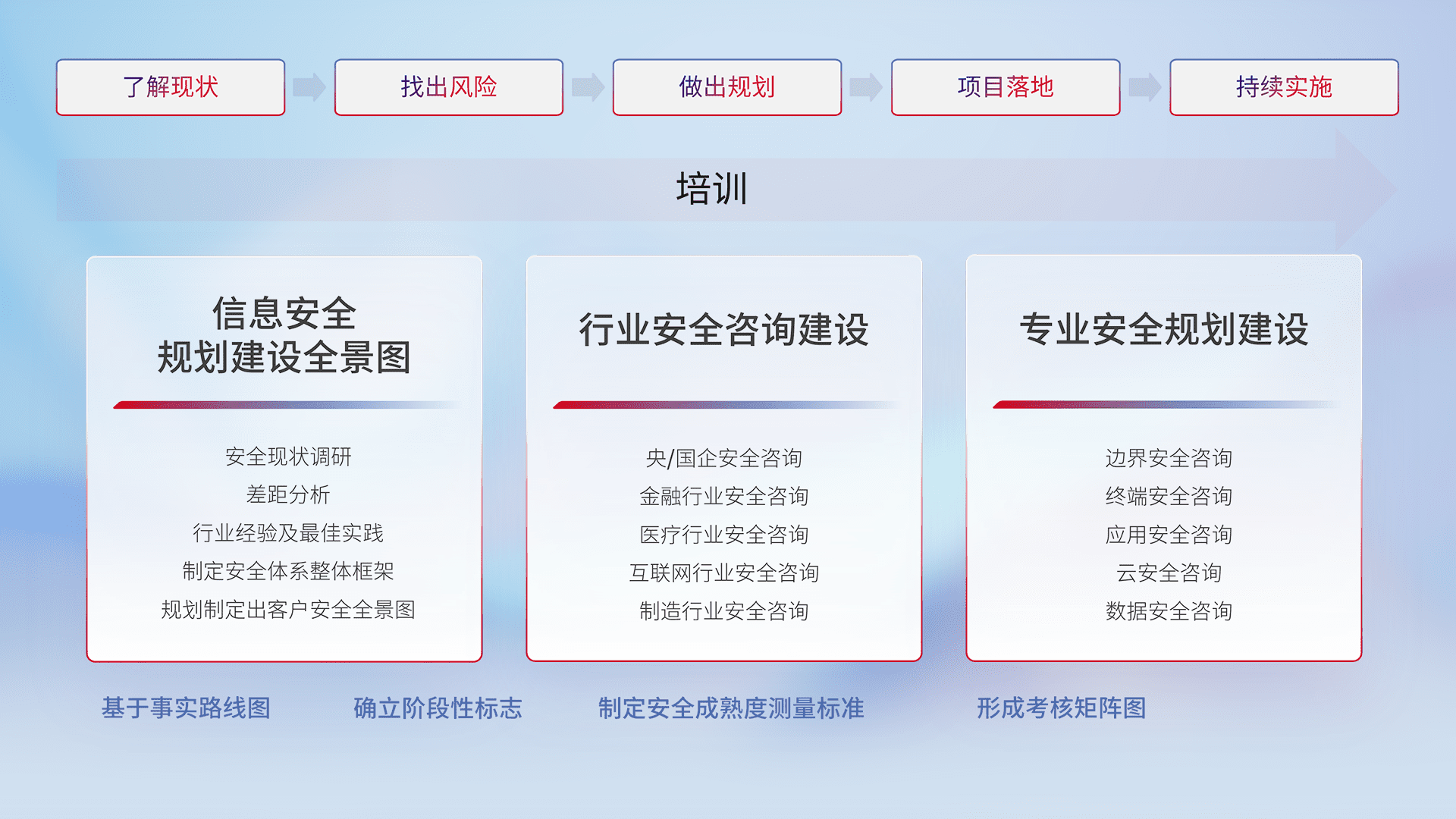 通过专业的法律咨询解读、、合规架构体现、、差异化解决方案、、测试实施支持等服务,,,为客户量身打造等保合规体系。。